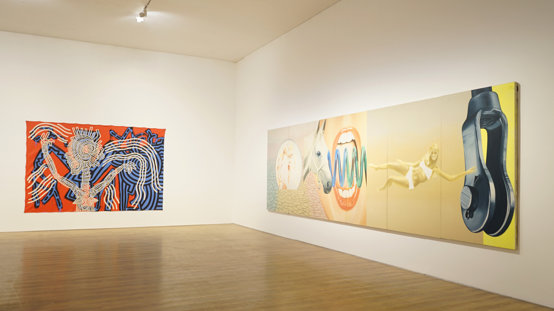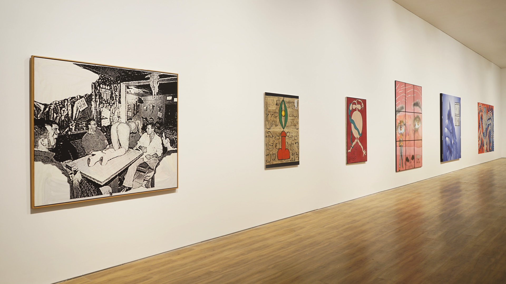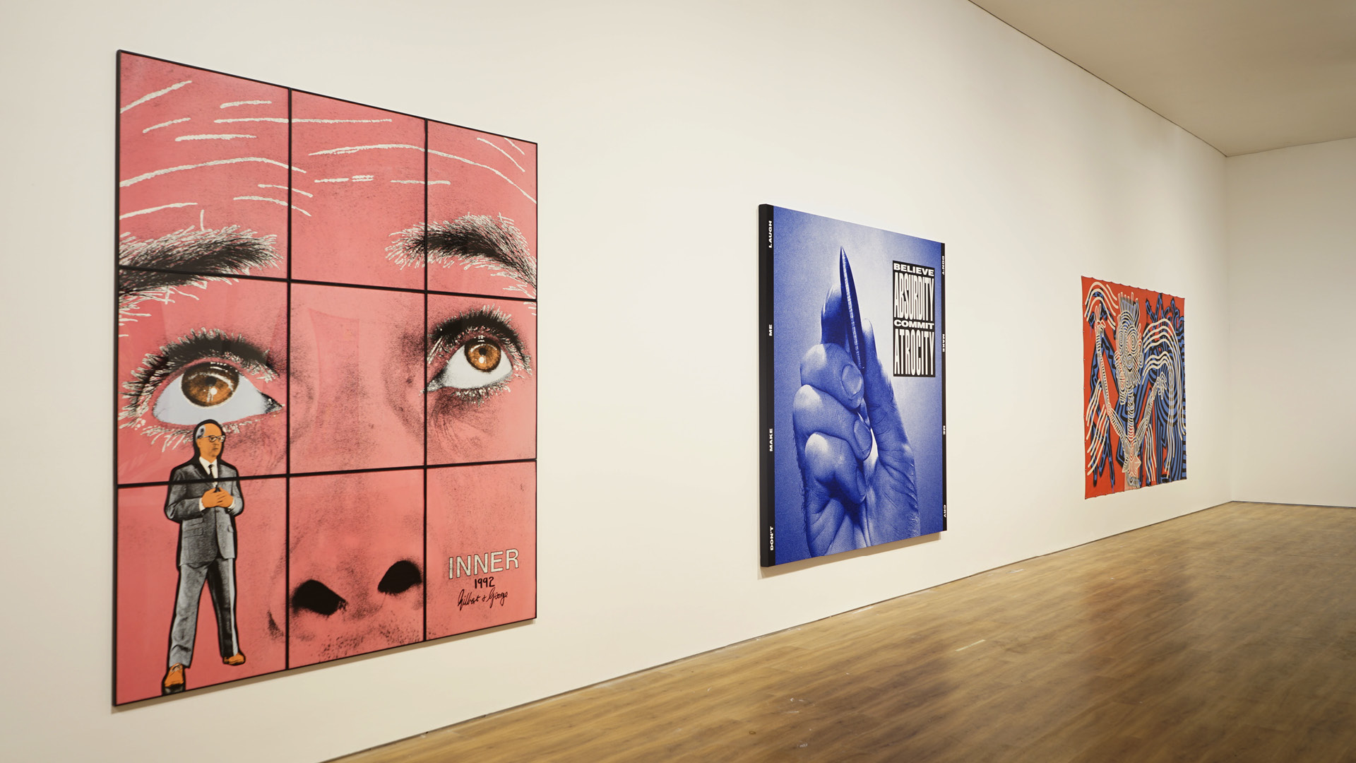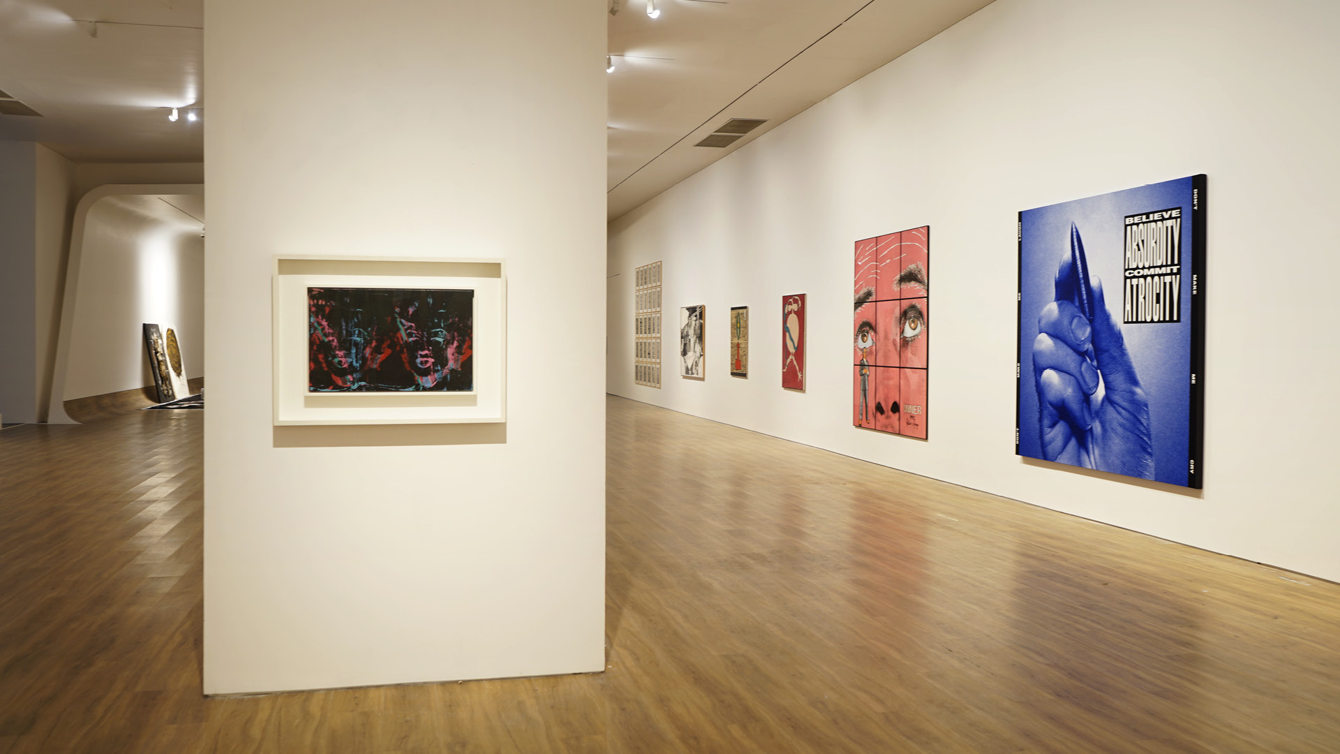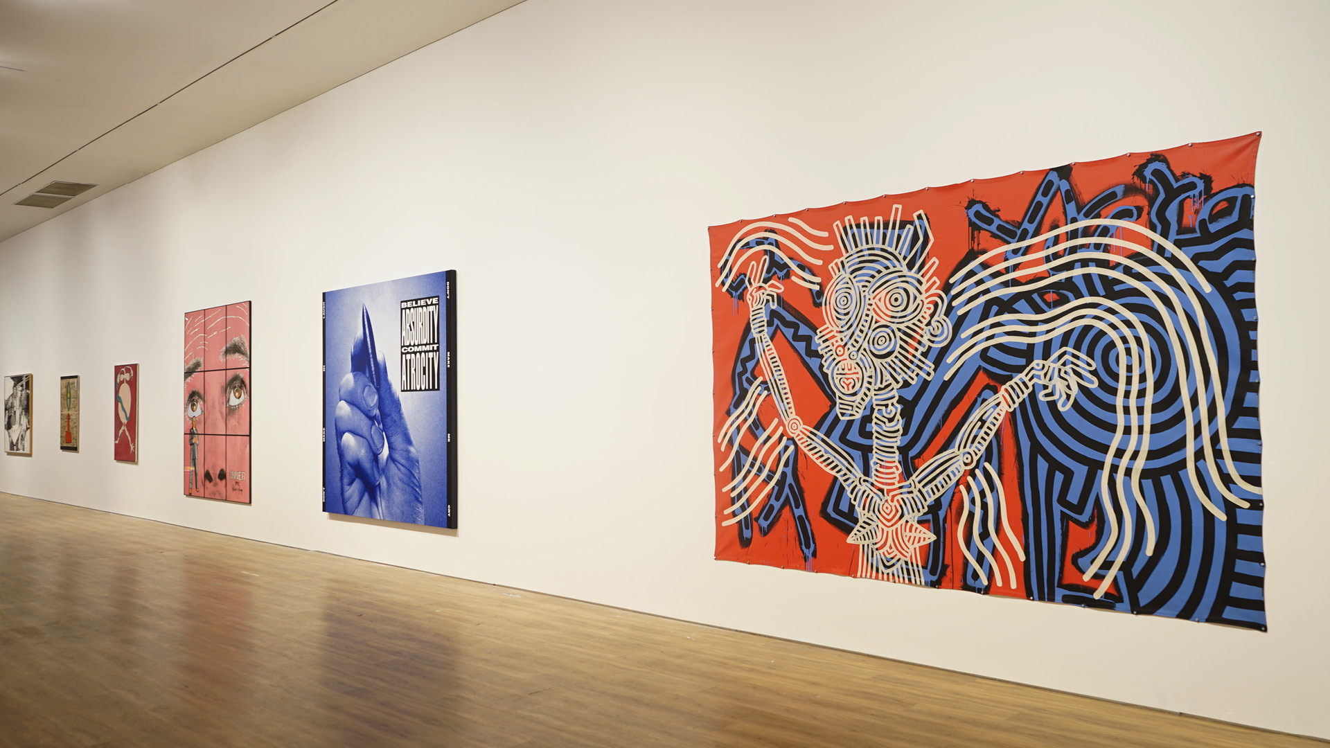 The exhibition includes works by Olafur Eliasson, Keith Haring, Sigmar Polke, Barbara Kruger, Zai Kuning, Tisna Sanjaya, and Bandu Darmawan.