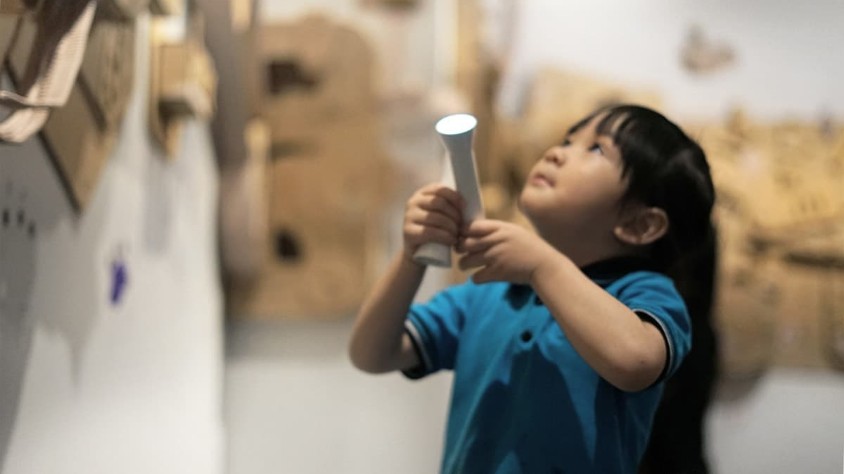 Bagian dari Kotak Utak-Atik, instalasi interaktif karya Gatot Indrajati untuk Ruang Seni Anak Komisi UOB Museum MACAN