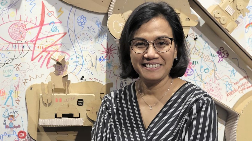 Sri Mulyani, Menteri Keuangan Republik Indonesia, mengunjungi Ruang Seni Anak Komisi UOB Museum MACAN