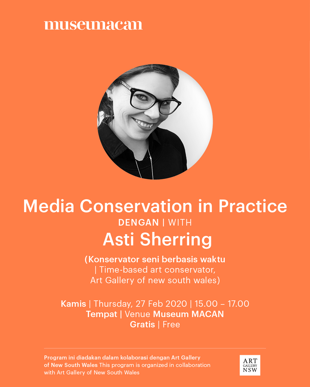 Bagaimana cara merawat kaset, film, koran dan bentuk media lainnya? Bergabunglah bersama Asti Sherring, yang akan berbagi pengalamannya sebagai seorang konservator seni berbasis waktu di Art Gallery of New South Wales. Diskusi ini diantarkan dalam Bahasa Inggris.