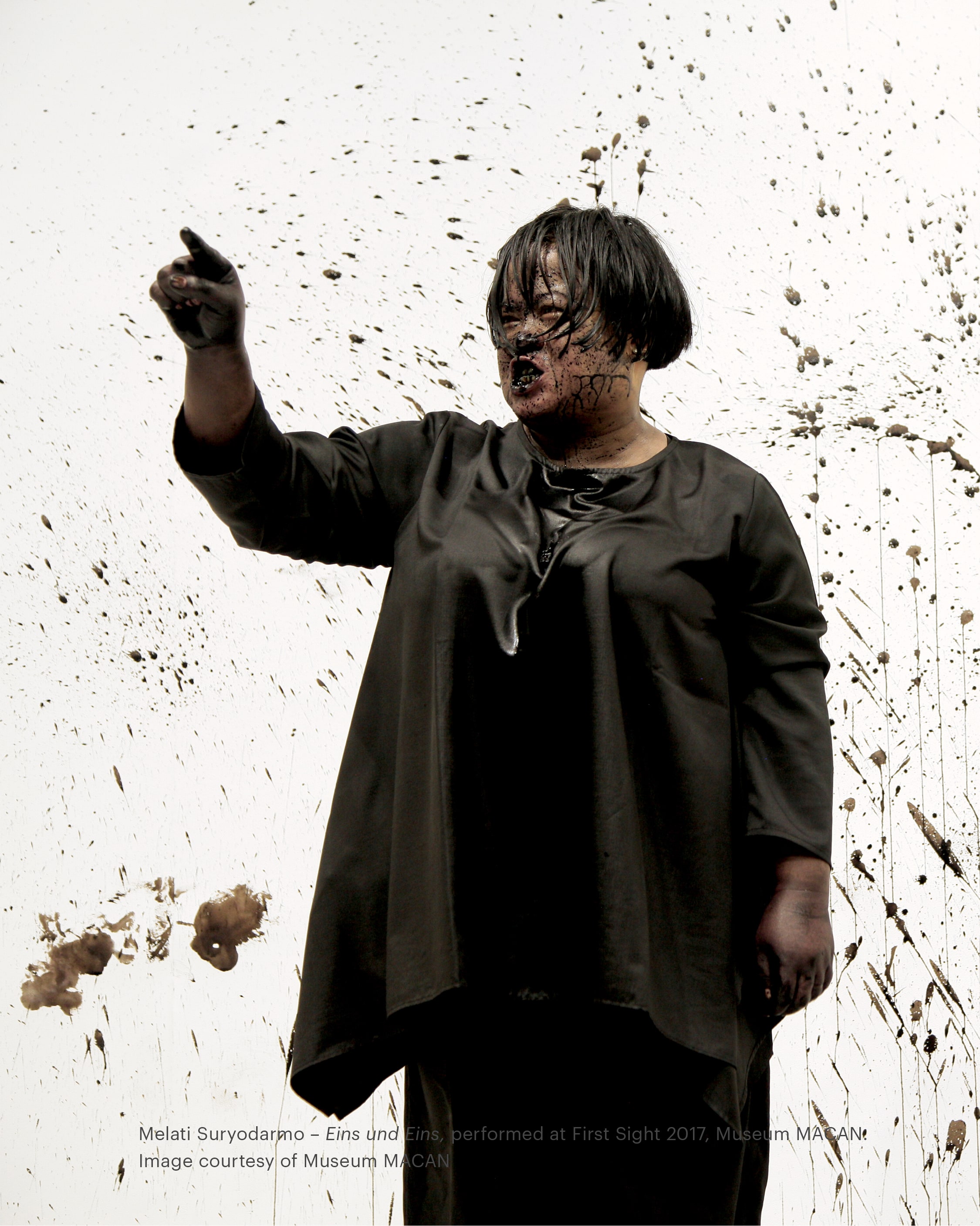 Eins und Eins (2017) adalah bagian dari seri performans dalam pameran 'Melati Suryodarmo: Why Let the Chicken Run?' di Museum MACAN.
